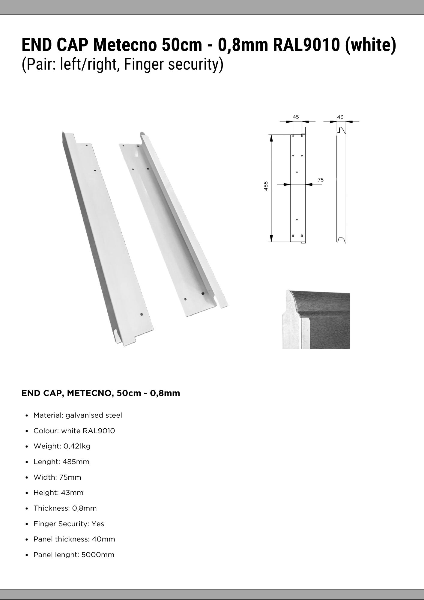 / END CAP Metecno 50cm – 0,8mm WHITE (RAL 9010), Finger Security