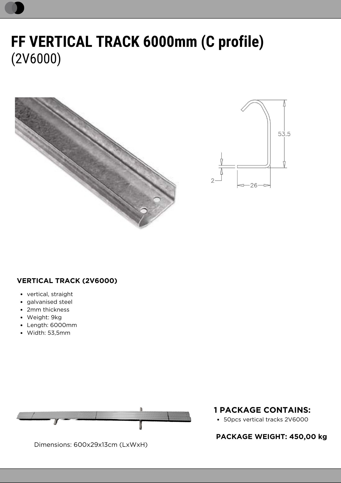 FF VERTICAL TRACK (C PROFILE) 6000mm