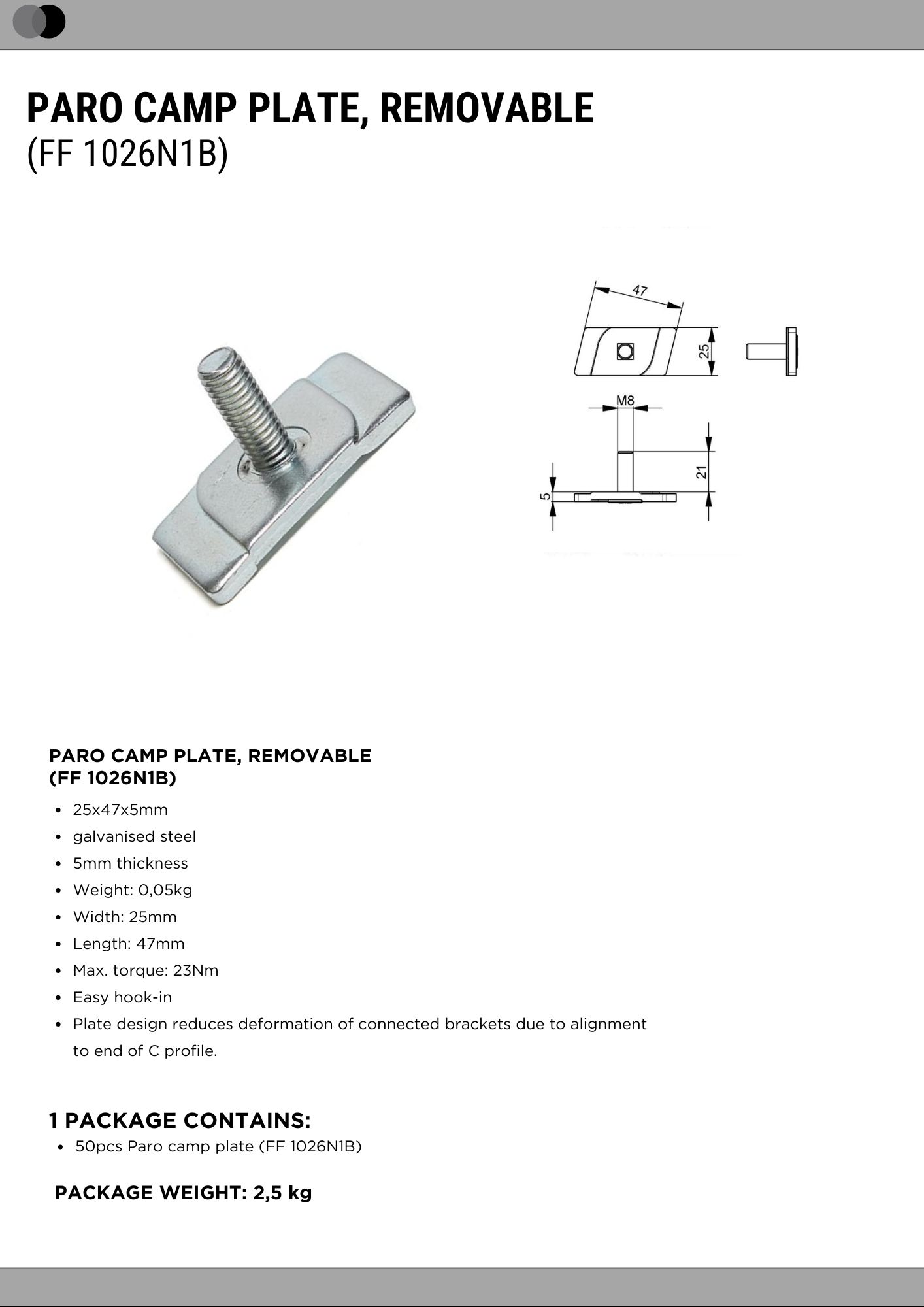 PARO CAMP PLATE, REMOVABLE (1026N1B)