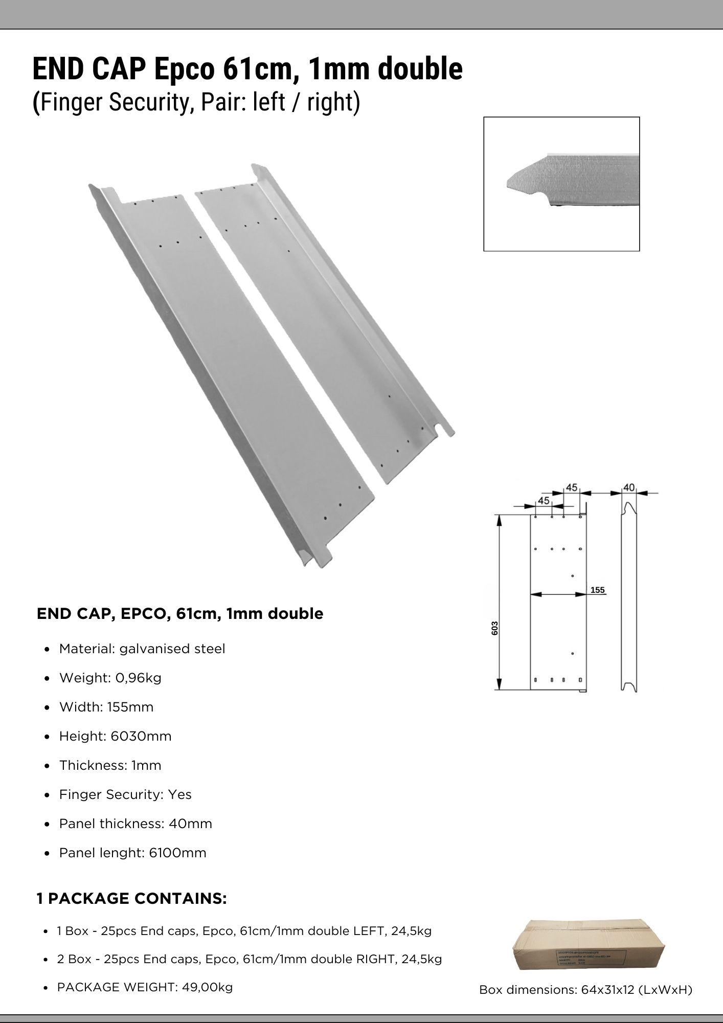 / Čepovi za panele Epco 61cm, 1mm dupli