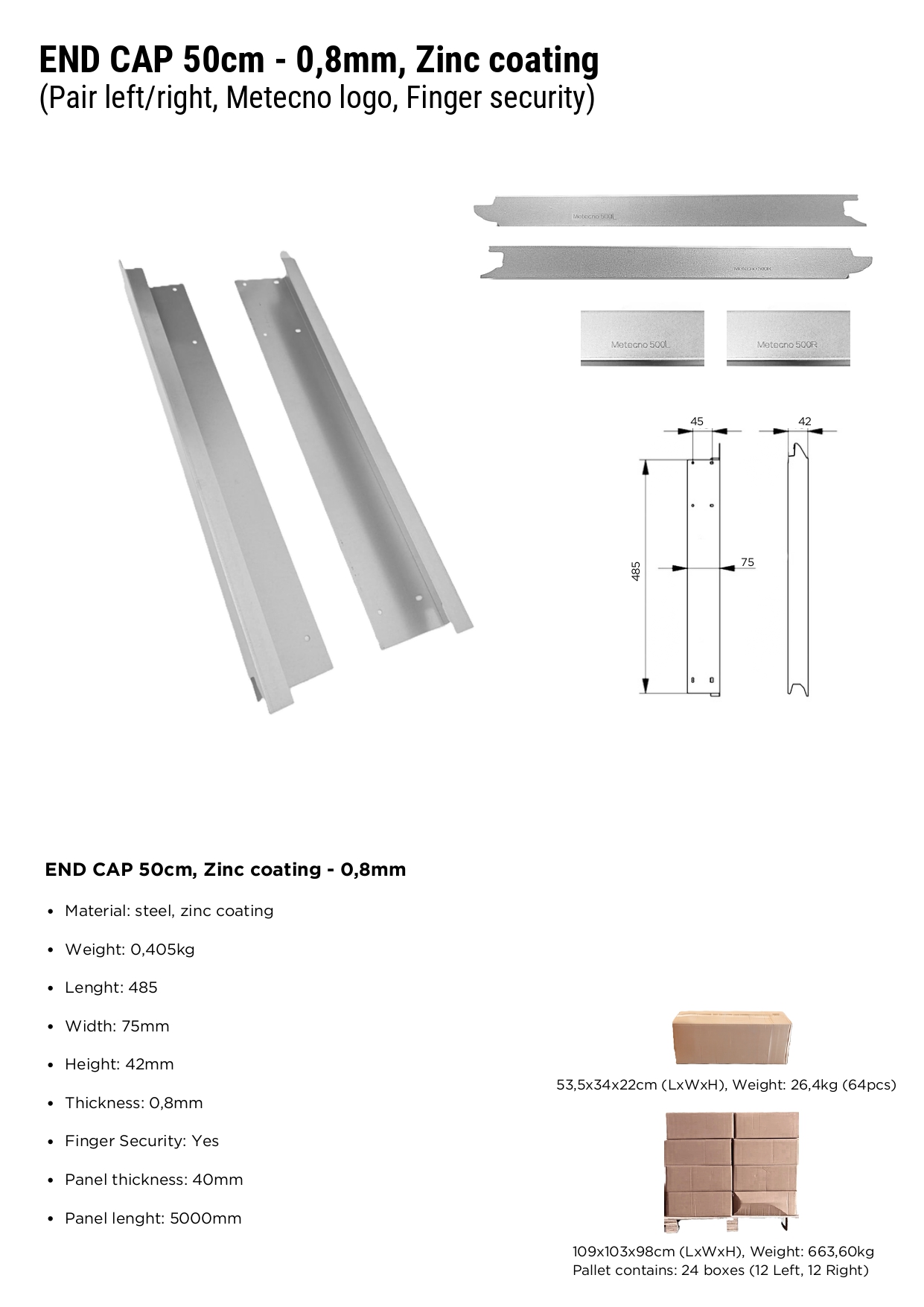 Čepovi za panele “Metecno” LOGO 50cm, 0.8mm – Pocinčani, Finger security