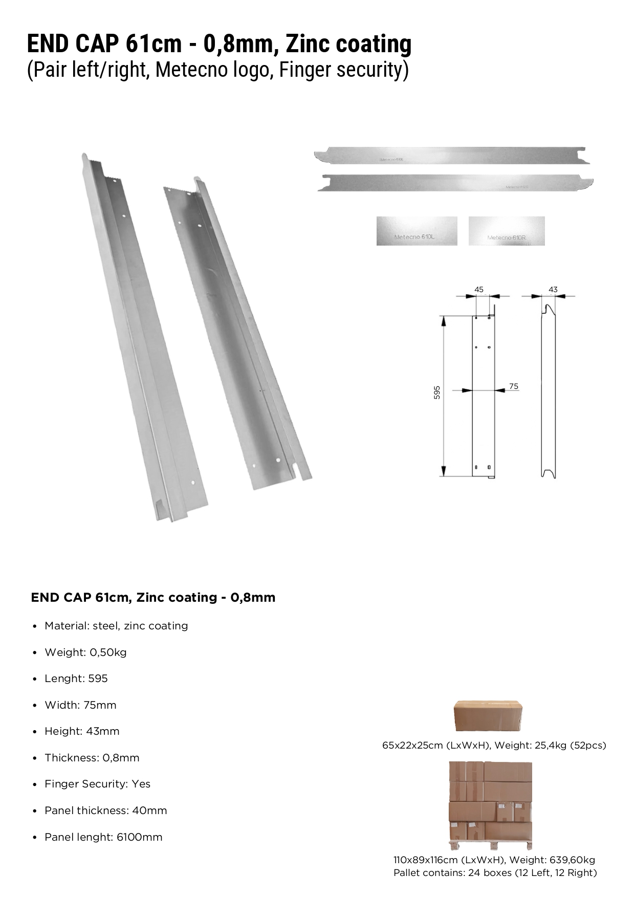 / Čepovi za panele “Metecno” LOGO 61cm, 0.8mm – Pocinčani, Finger security